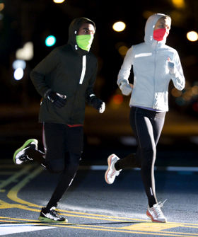 Por cierto, es muy probable que corras "de noche" porque los días de invierno son más cortos, por lo que te recomendamos usar la chaqueta o "rompevientos" de colores fluorescentes para que puedas distinguirte en la obscuridad.