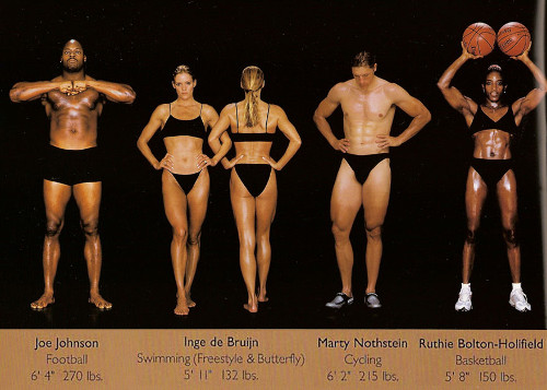 Pero bueno, pensemos en un mundo ideal donde las reglas de la genética se siguen y los hombres tienen más masa muscular y las mujeres más grasa. Entonces: